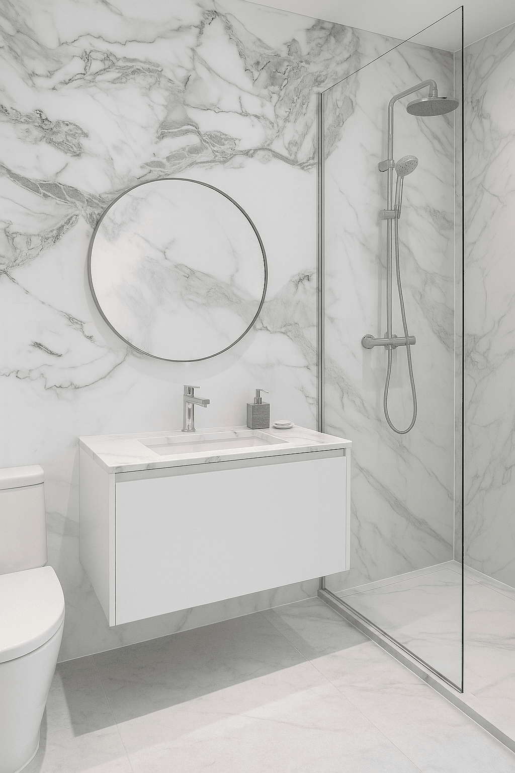 De Crystal White Marble PVC Wandpaneel is ideaal voor interieurs die licht, luxe en rust uitstralen.
