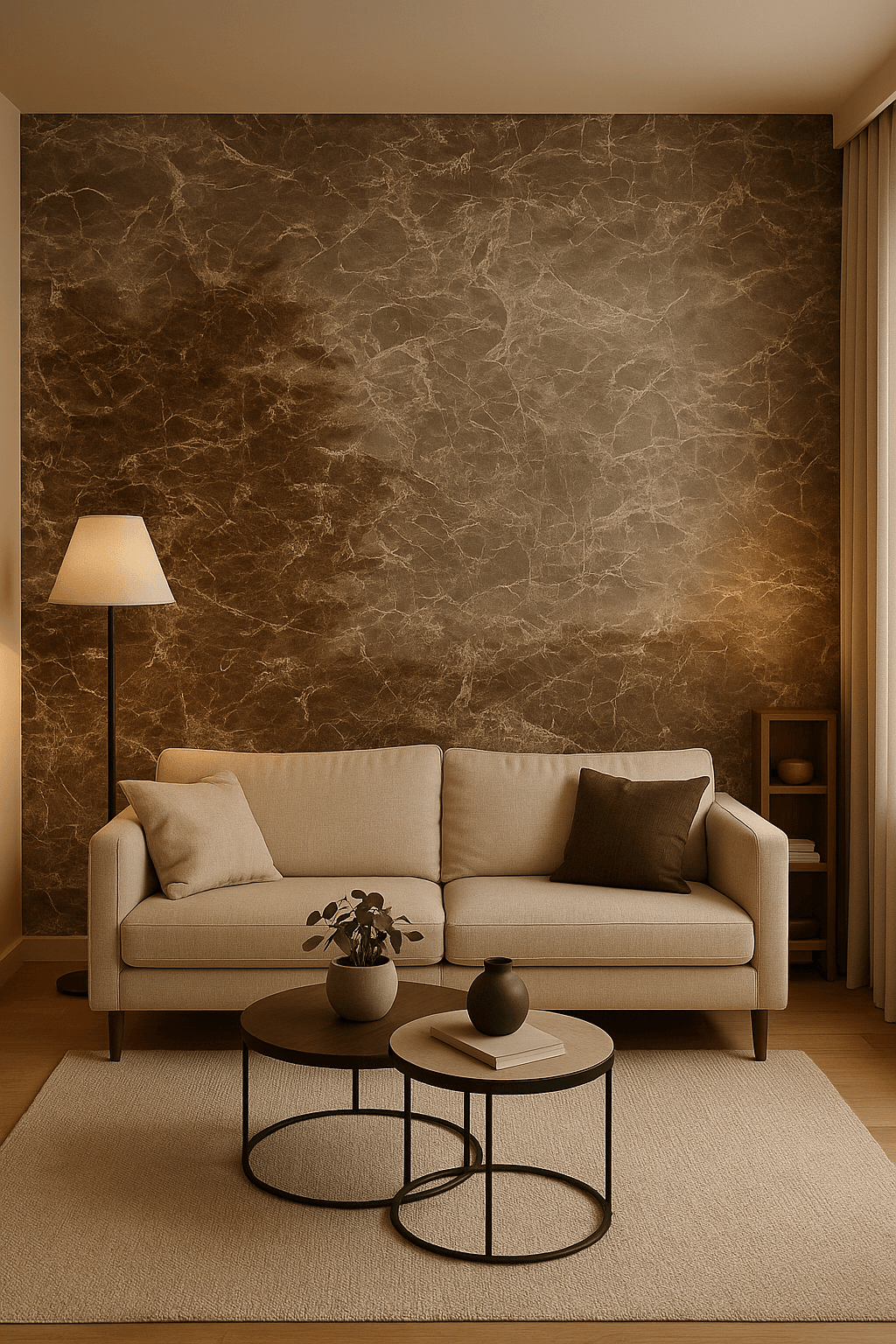 De Emperador Brown Marble PVC Wandpaneel is perfect voor woonkamers, badkamers, keukens, hotels of kantoren. Combineer het met goudkleurige of zwarte accenten voor een luxueuze, moderne look.