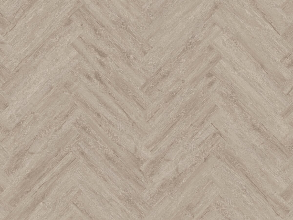 Een verfijnde PVC-vloer met lichte eiken look en tijdloos visgraatpatroon. Brengt warmte en elegantie in elke ruimte, met extra comfort dankzij de geïntegreerde ondervloer.
